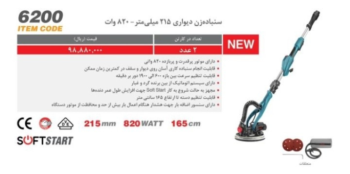 - امکان تنظیم ارتفاع دسته سنباده زن تا 165 سانتی متر