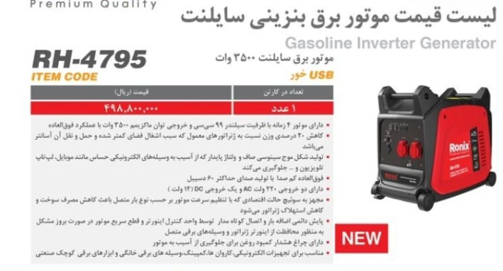 موتور برق بنزینی چهار زمانه سایلنت ۳۵۰۰ وات رونیکس مدل RH-4795