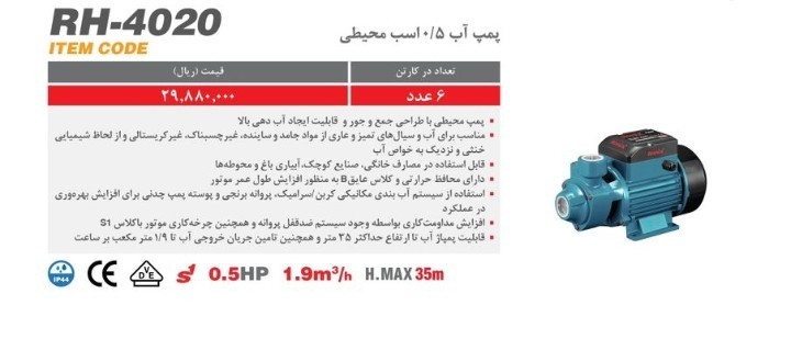 پمپ آب 0.5 اسب بخار رونیکس مدل RH-4020