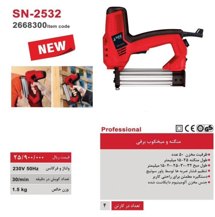 برخی از قابلیت های میخکوب و منگنه کوب برقی محک SN-2532: