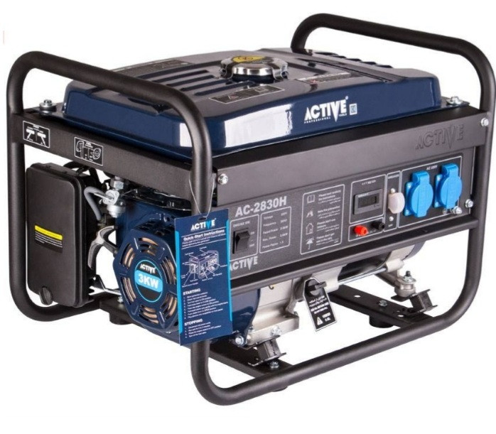 ژنراتور یا مولد برق دستگاهی جهت تبدیل انرژی مکانیکی به انرژی الکتریکی بوده و درنهایت برق تولید مینماید. با استفاده از ژنراتور از قطع برق در فعالیتهای روزانه یا اختلال در عملیات کاری پیشگیری میشود.« موتوربرق 3 کیلو وات اکتیو مدل AC2830H » تک فاز بوده و از اجزا با کیفت بالا تحت استاندارد CE ساخته شده است. موتور این ژنراتور OHV هست که نسل جدید موتورهای مورد استفاده در ژنراتور است. موتورهای OHV دارای مزیتهای از قبیل طراحی جمع و جور، مکانیسم کار سادهتر، دوام بالاتر موتور، انتشار دود کم است. آلترناتور یا همان قسمت تولید برق متناوب نیز از مهمترین اجزا دستگاه ژنراتور محسوب میشود که در این ژنراتور از آلترناتور 100% مس، با کیفیت بالای اجزا ساخته شده توسط دستگاههای اتوماسیون پیشرفته تولید شده است.این دستگاه مجهز به سیستم AVR جهت جلوگیری از نوسانات الکتریکی هست. استارت این دستگاه دستی (هندلی) بوده و همچنین وجود لرزهگیر در این دستگاه باعث کاهش ارتعاشات دستگاه میشود. سیستم خنک کننده این ژنراتور به افزایش گردش هوا و تبادل گرمای تولیدی اش کمک مینماید. این دستگاه دارای نشانگر دیجیتال VFT هست که ولتاژ و فرکانس جاری را نمایش میدهد. این ژنراتور دارای مخزن سوخت 17 لیتری با قابلیت استفاده مداوم به مدت 9 ساعت را دارا است. این دستگاه دارای دو خروجی برق بوده و عمدتا جهت روشن کردن تلویزیون، روشنایی در حد لازم، سیستمهای ارتباطی و مخابراتی از قبیل تلفن و فکس، منازل، ویلا و مجتمعهای مسکونی مورد استفاده قرار میگیرد.
