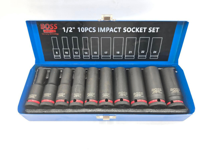 ✔ دارای ۹ عدد بکس بلند فشار قوی( سایزهای: ۸، ۱۰، ۱۲، ۱۴، ۱۵، ۱۷، ۱۹، ۲۱، ۲۲ و ۲۴)
