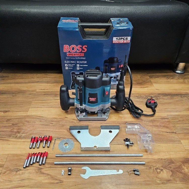 ✔ به همراه ریل، کشویی، ذغال یدک و آچار تنظیم ، ۱۲ عدد مته اور فرز در سایزها و مدل های مختلف