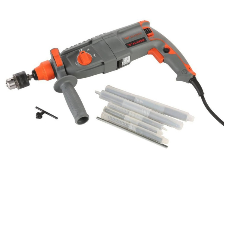 دریل بتن کن سه کاره آلاندو AL-1221 دارای توانی برابر با ۱۳۰۰ وات است که این امکان را میدهد تا با انرژی ضربهای ۲.۸ ژول کارایی بالایی در سوراخکاری و تخریب داشته باشد. سرعت گردش آزاد این دریل ۱۱۰۰ دور در دقیقه است و قادر است تا ۴۰۰۰ ضربه در دقیقه ایجاد کند، این ویژگیها آن را برای پروژههای سخت ساختمانی و تخریب بسیار مناسب میسازد. ابزارگیر چهار شیاری به آن اجازه میدهد تا با متههای مختلف سازگار باشد و به راحتی قطعات اضافه را تعویض کند.