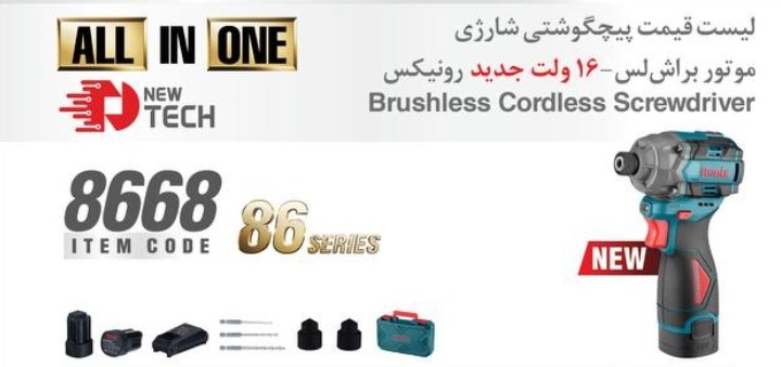 پیچ گوشتی شارژی 16 ولت براشلس کیفی رونیکس مدل 8668