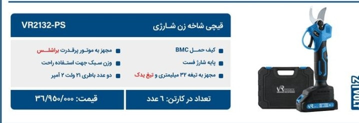 قیچی شارژی 21 ولت ۳۲ میلیمتری با تیغ یدکی ویوارکس مدل VR2132-PS