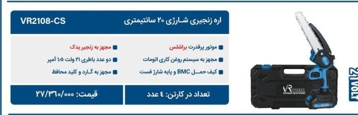 اره شارژی 21 ولت براشلس دو باتری ویوارکس مدل VR2108-CS