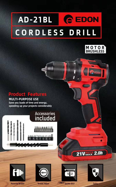 دریل شارژی 21 ولت براشلس دو باتری ادون مدل AD-21BL