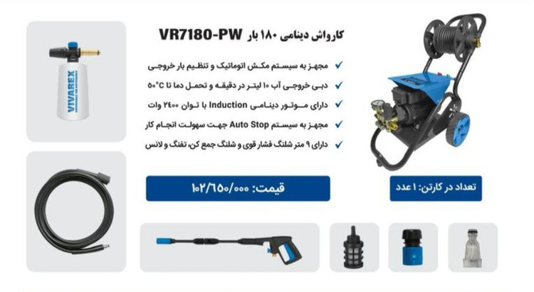 کارواش دینامی 180 بار چرخدار ویوارکس مدل VR7180-PW