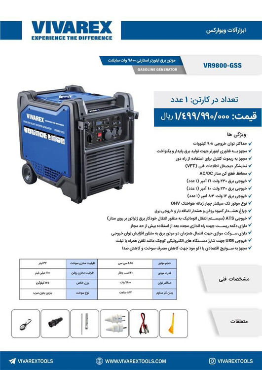 موتور برق ۹۸۰۰ وات استارتی سایلنت ویوارکس مدل VR9800-GSS