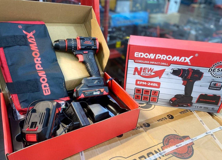 دریل شارژی 24 ولت براشلس چکشی سه نظام فلزی ادون پرومکس مدل EPM-24EL