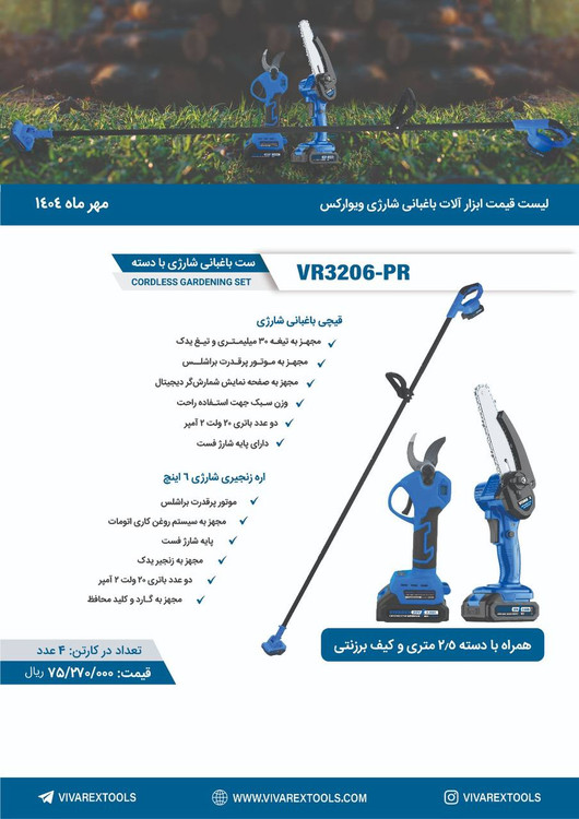 ست باغبانی شارژی ۲۰ ولت براشلس دو باتری ویوارکس مدل VR3206-PR