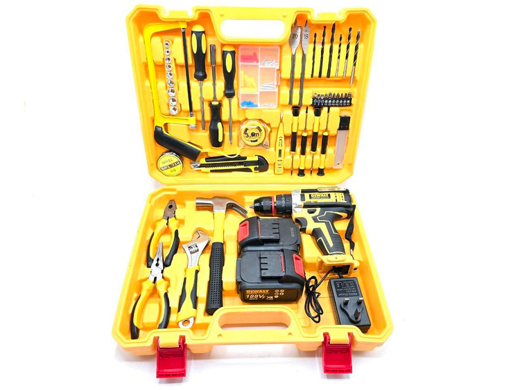✔ دارای کلیه ابزارهای مصرفی شامل؛ آچار فرانسه سایز۸، انبردست، دمباریک، چکش، بکس تک سایز ۴ تا ۱۳، متر ۳ متری، پیچ گوشتی دوسو و چهارسو سایز بزرگ، پیچ گوشتی نوک خور، مته آهن سایز ۵ و ۶ و ۸، مته دیوار سایز ۵ ،۶ و ۸، مته برگی سایز ۱۲ و ۱۶، ۹ عدد نوک پیچ گوشتی، تبدیل نوک پیچ گوشتی به بکس چسب برق، کاتر، فازمتر دیجیتال، آچار سه نظام، ۵ عدد تیغ کاتر، دو سایز پیچ گوشتی موبایلی دو سو و دو سایز پیچ گوشتی موبایلی چهارسو، کمان اره چوب و فلز، مجموعه سایزبندی پیچ و رولپلاک