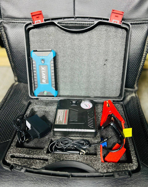 - سایر ویژگی ها: قابلیت استارت خودرو قابلیت تنظیم باد لاستیک (کمپرسور )و پنچرگیری قابلیت پاور بانک ظرفیت باتری 20000mAH/5V ابعداد کیف ۳5×۲8×۸ سانتیمتر قابلیت استارت باتری خودرو مناسب جهت راه اندازی وسایل الکترونیک خودرو مناسب برای شارژ همزمان موبایل، تبلت و … راه اندازی باتری ماشین دارای چراغ قوه LED و دو عدد چراغ فلشر اضطراری آبی و قرمز خروجی USB دارای چراغ و قطب نما