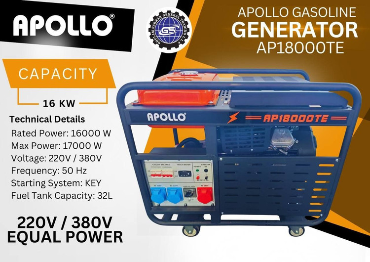 ⭐ ژنراتور (موتور برق) ۱۶ کیلو وات تک فاز/سه فاز آپولو