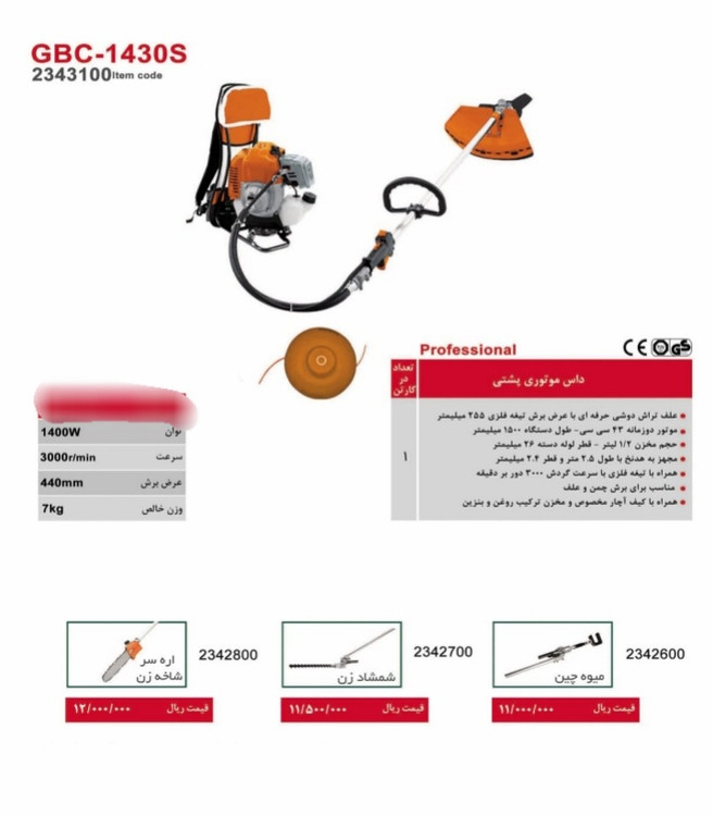 داس موتوری پشتی تاپ گاردن مدل GBC-1430S