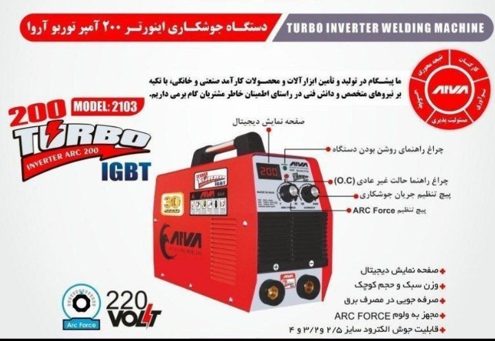اینورتر جوشکاری ۲۰۰ آمپر توربو آروا